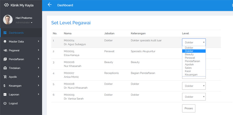 4. Multi level, dokter, beauty, perawat, keuangan, apotik, kasir dan lain sebagainya