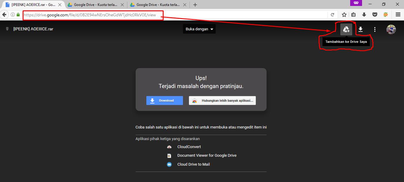 Jika anda pernah mengalami seperti gambar di bawah ini, silahkan ikuti langkah - langkahnya untuk Cara Mengatasi Google Drive Limit Kuota