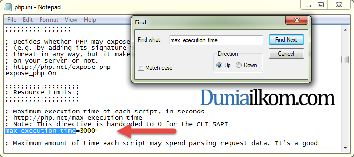 Caranya adalah dengan menambah batasan waktu dari pengaturan: max_execution_time.